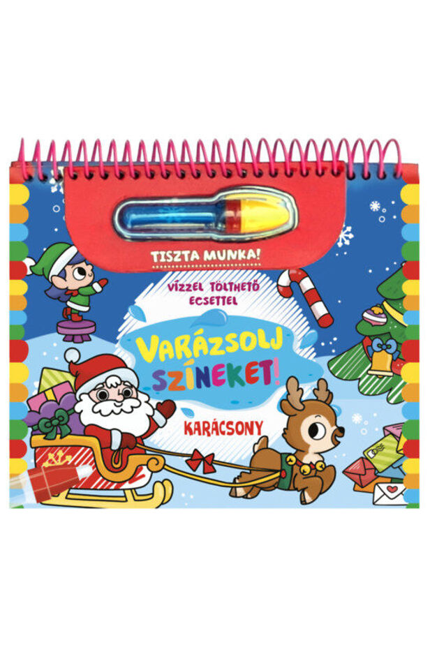 A Varázsolj színeket! - Karácsony füzet tökéletes társ a karácsonyi készülődésben. Egy kedves történet kíséretében kelthetitek életre a képeket a különleges vízzel tölthető toll segítségével. A legjobb benne, hogy a varázslatos színek mindig visszatérnek, így újra és újra átélhetitek a karácsonyi csodát. Tökéletes ajándék és szórakozás a kicsiknek, akik így játékos módon ismerkedhetnek meg a karácsony hangulatával.